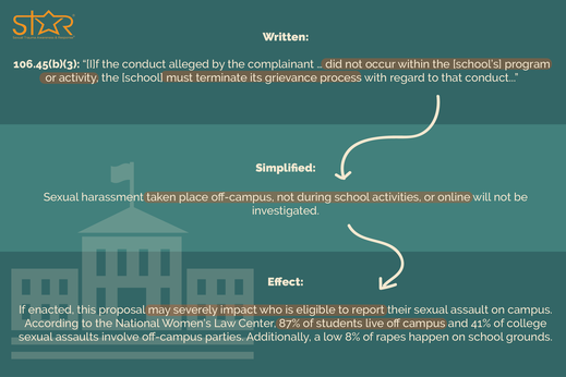 My colleague, STAR Resource Advocate Alexis Canfield and I worked together to write this blog post that explained how these changes would impact survivors of sexual assault and what a concerned citizen can do to express their opinion. This also became a presentation that I gave to various college organizations to get students mobilized to share their voice, make comments on the then-proposed Title IX changes, and put pressure on Louisiana State University to state where they stand on the changes.